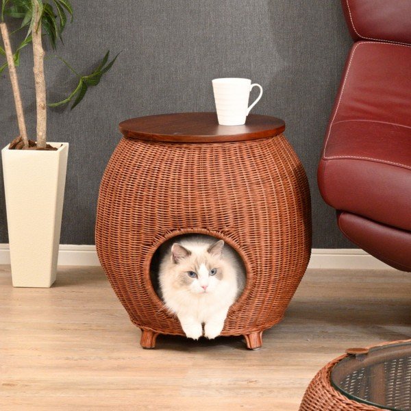 네코세카이 라탄 사이드테이블 베드 카멜