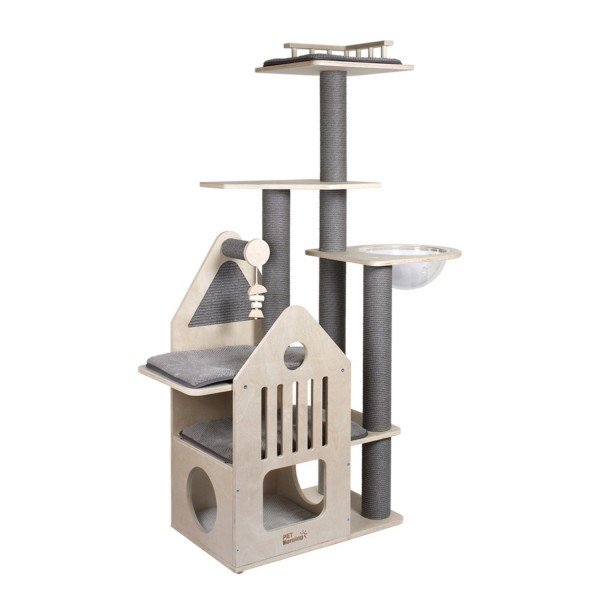 펫모닝 모던 캐슬 투명볼 원목 캣타워 PMC-6523