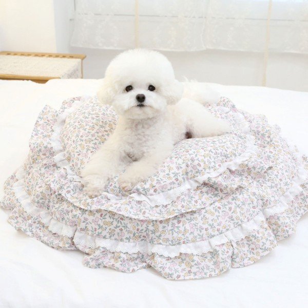 이츠독 코네 프릴 베드 체크베이지 M